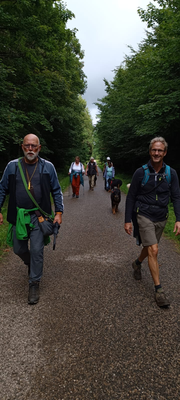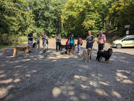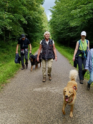 Bei schönstem Wetter wanderten 9 Menschen mit ihren Hovawarten auf Bergbauspuren rund um Hoffnungsthal.